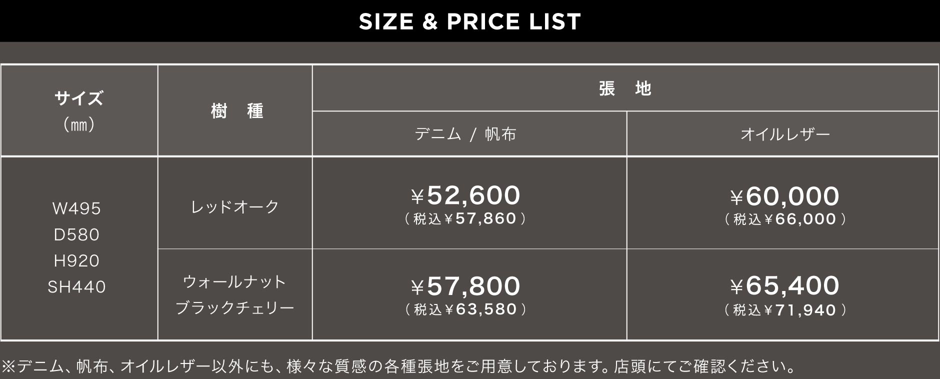 ファブリックであれば帆布やデニム、革ならオイルレザーなど、使い込む程に風合いが増していく自然素材を中心にご用意しております。ご自宅の雰囲気やお客様のお好みに合わせてお選び頂くことができます。