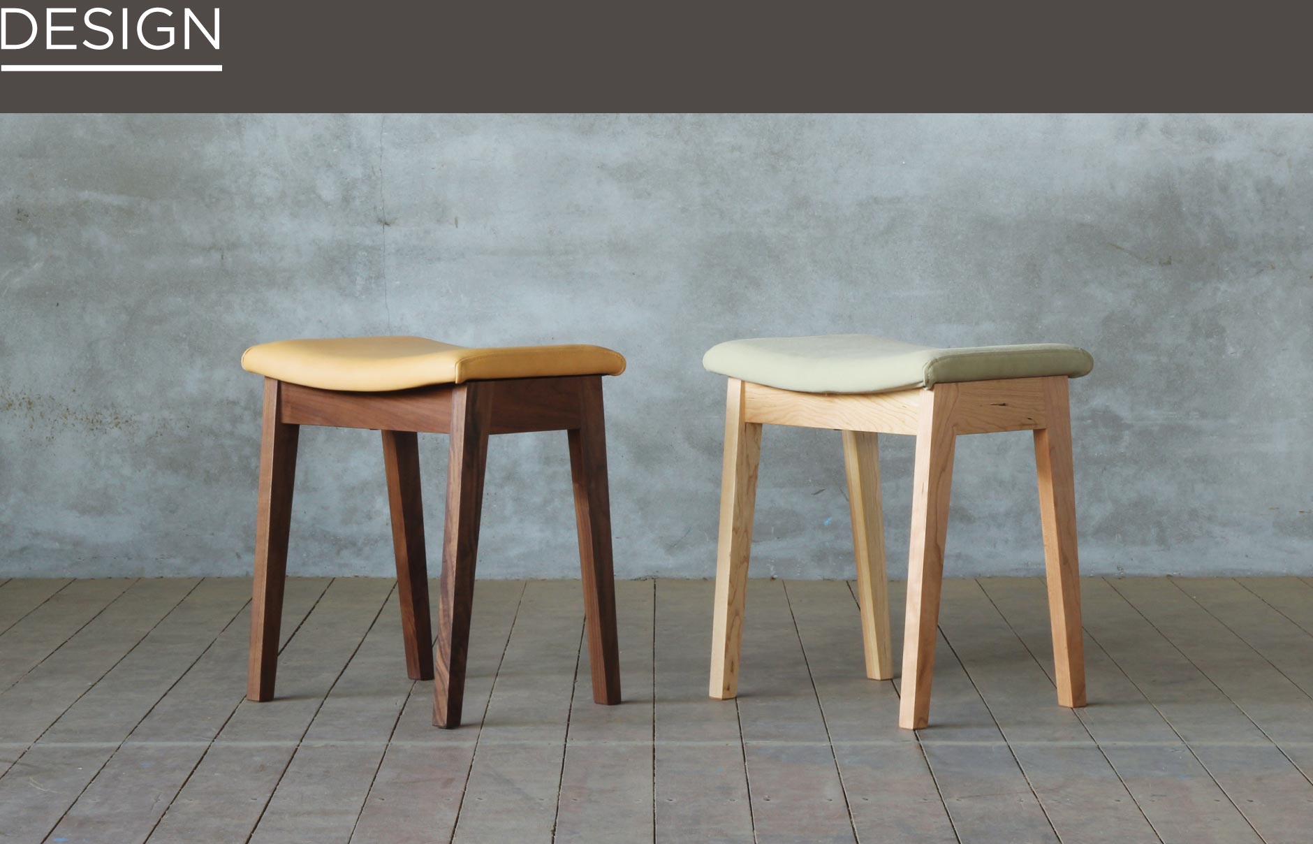 直線的なラインが美しい、無垢材のスツール。