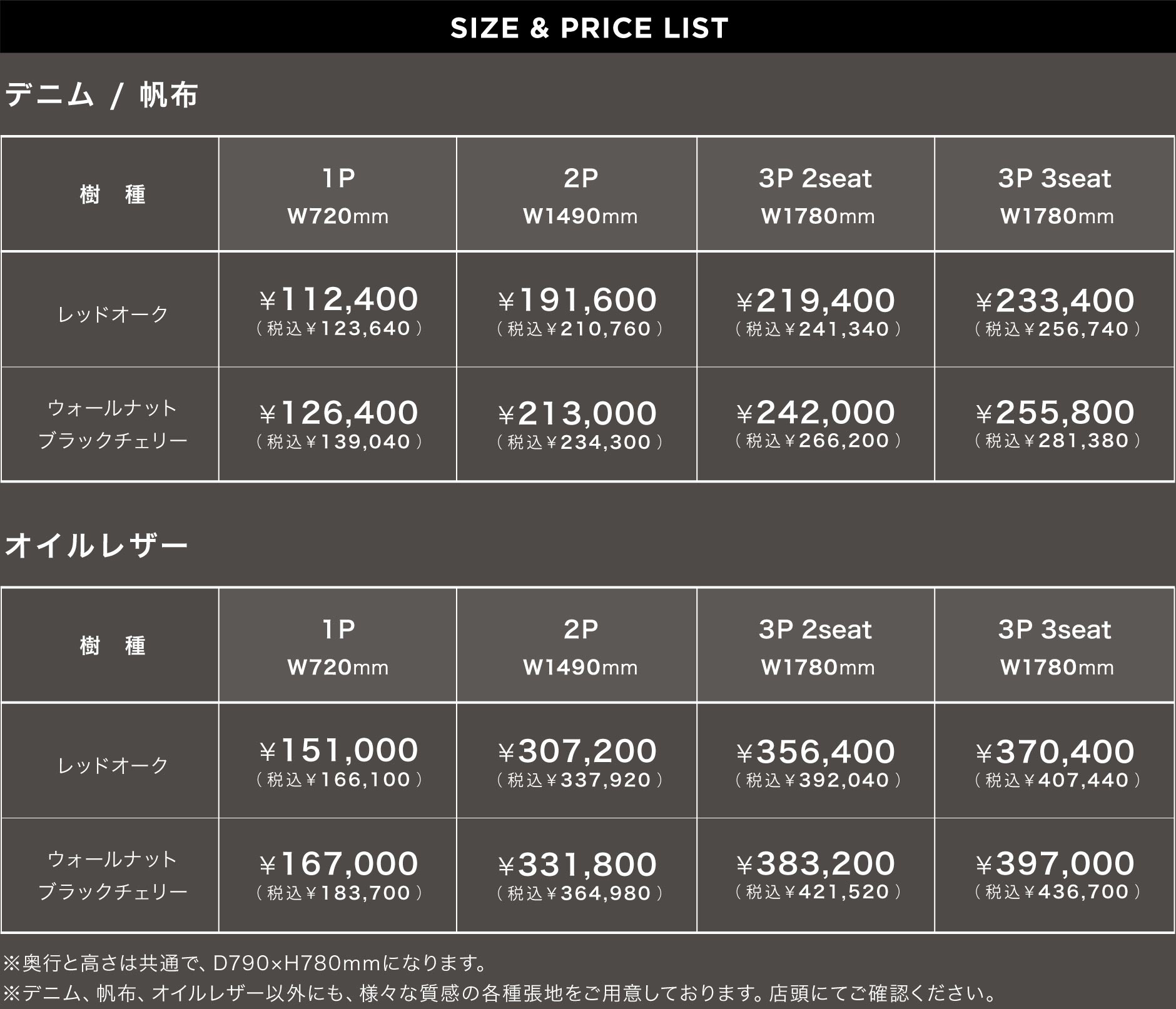 ※写真には価格表外の張地も含まれます。詳しくはお問合せ、もしくは店頭にてご確認ください。